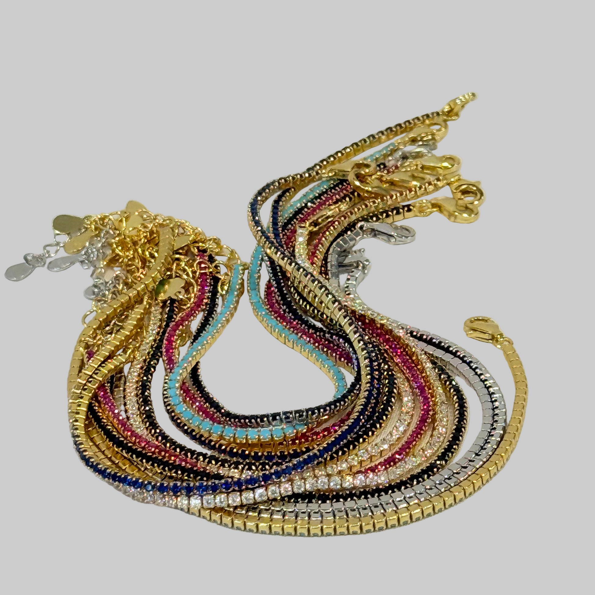 Indulge in a whisper of luxury. The Micro CZ Tennis Choker is a delicate strand of sparkle—sleek, timeless, and endlessly refined. Adorned with tiny, brilliant cubic zirconia stones set in 18K gold-filled or rhodium-filled metal, it’s the perfect touch of subtle glam for layering or wearing solo.